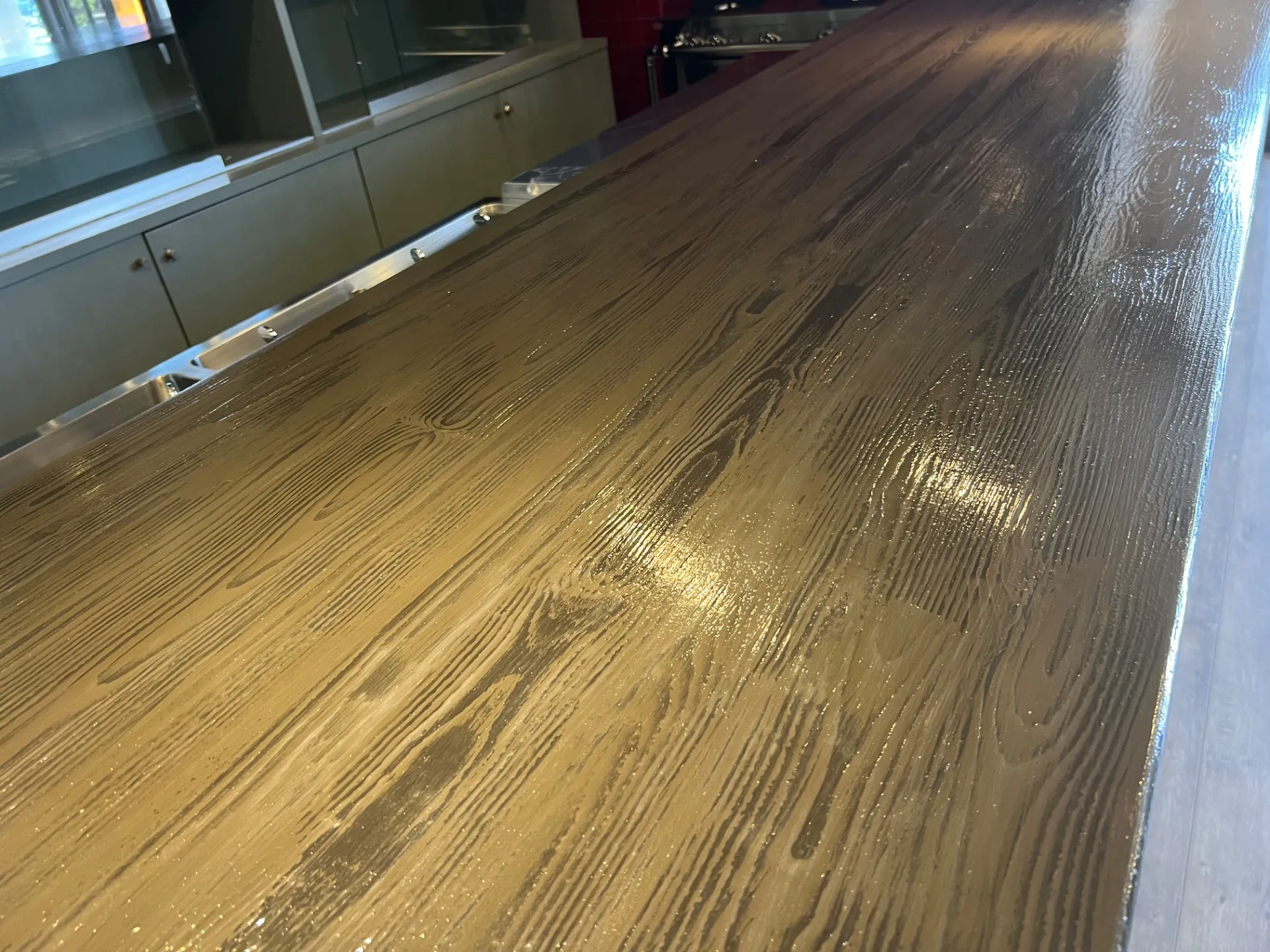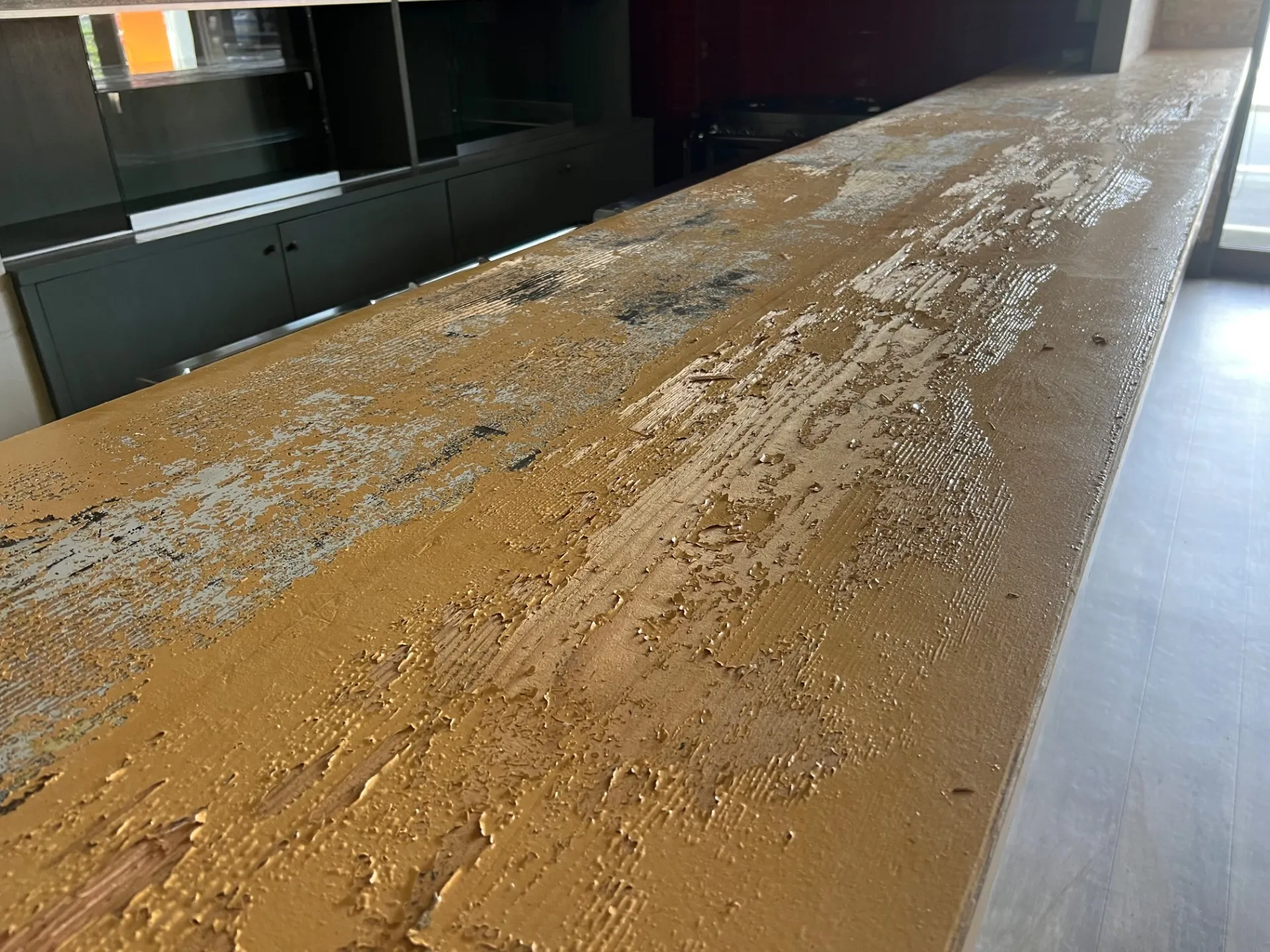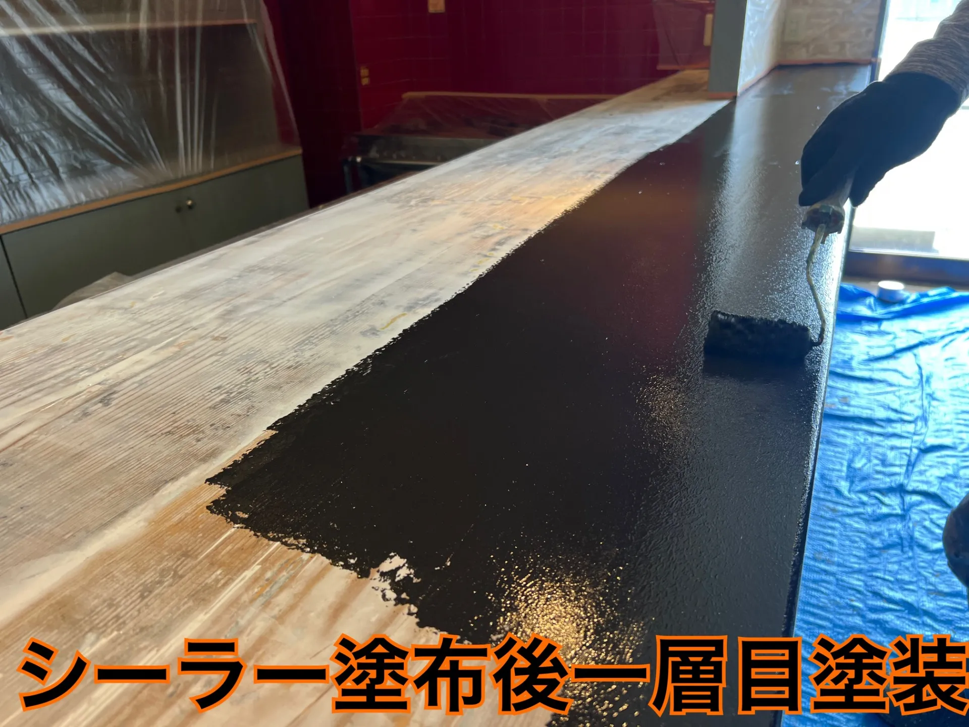 メインカウンターがペンキによる塗りつぶしが施工されておりボロボロの状態…😓